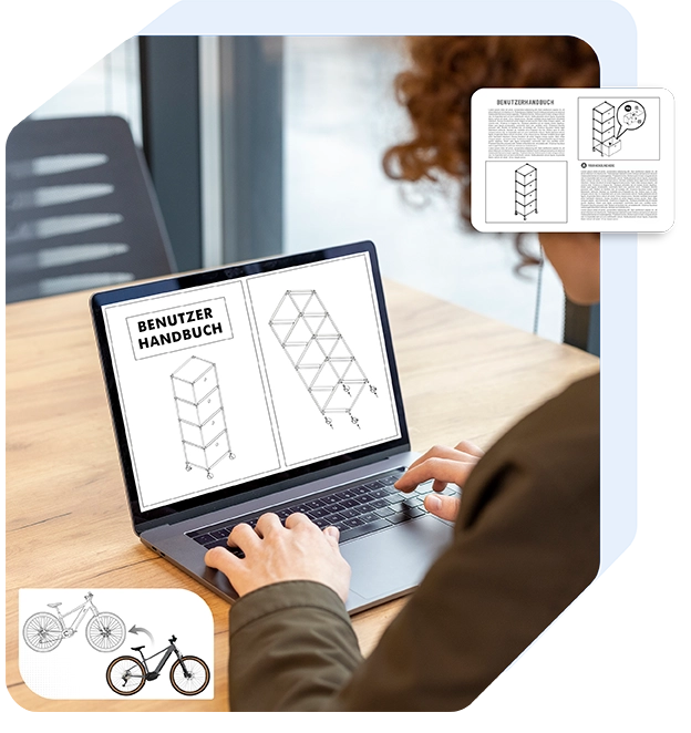 Unser Service ist auf die Erstellung klarer, benutzerfreundlicher Handbücher spezialisiert, die Ihre Produkte für jedermann leicht verständlich machen. Wir arbeiten eng mit Ihnen zusammen, um genaue Informationen zu sammeln und diese dann in einfache, schrittweise Anleitungen umzusetzen. Dazu gehören präzise Strichzeichnungen aller Produkte und ihrer Ersatzteile sowie detaillierte Montageabbildungen. Wir verfügen über umfangreiche Erfahrungen bei der Erstellung von Bedienungsanleitungen, die den strengen Richtlinien großer EU-Einzelhändler wie LIDL, ALDI und anderen entsprechen, damit Ihre Dokumentation stets professionell und konform ist.